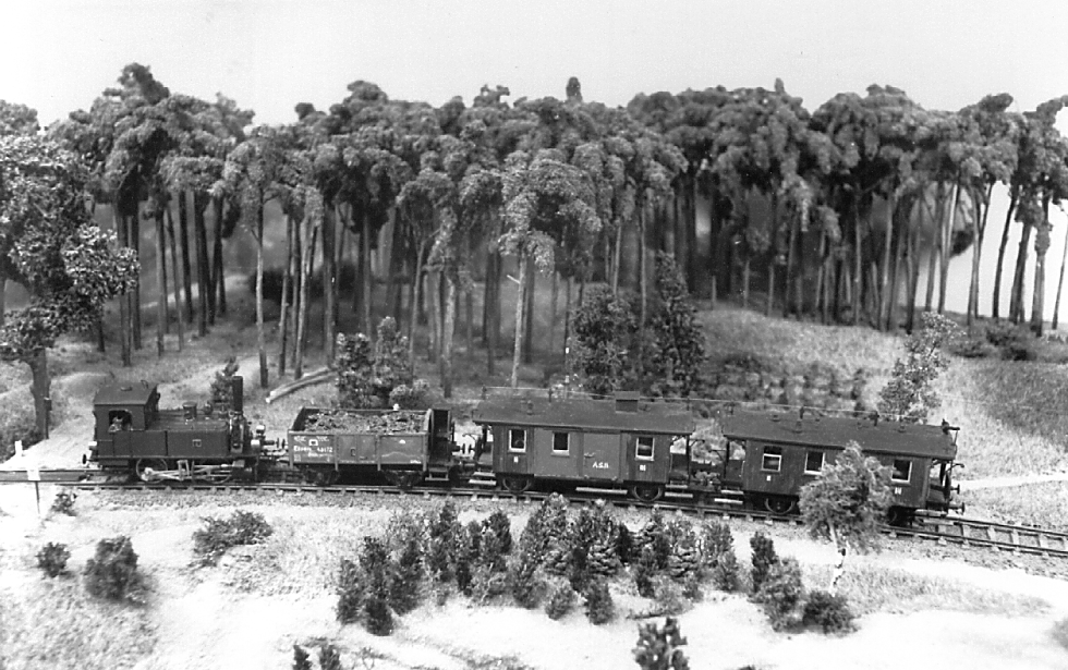Motiv der wunderschönen Modellbahn-Anlage (HOm) von Günter Barthel (†), bei der die FKB als Vorbild diente. Foto: RT 8/1975