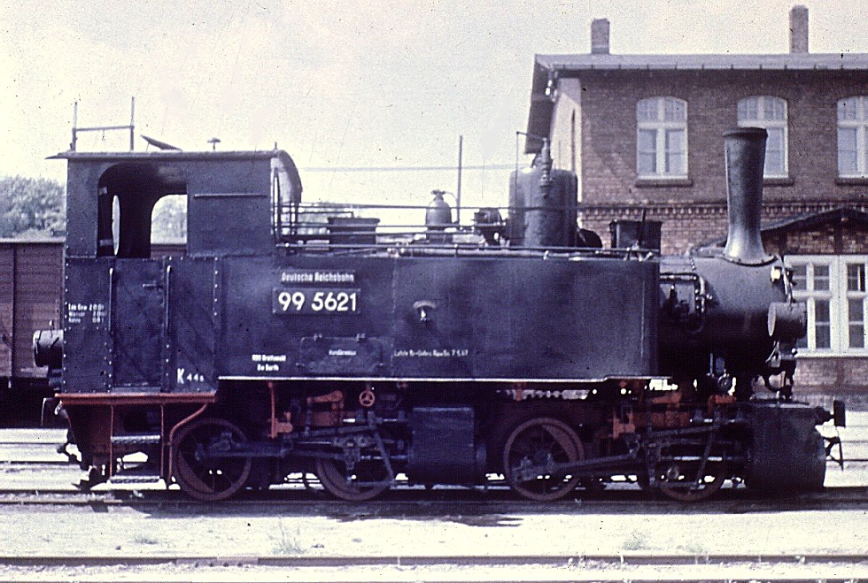 DR-Lok 99 5621 (Lenz-Typ „ii“ Mallet, ex FKB-N 7ii > 165) gebaut von Vulcan/Stettin 1902/2008 im Schmalspurbahnhof Barth 6/1967, ausgemustert 07.01.1969 Foto: Günter Barthel (†) Archiv RT