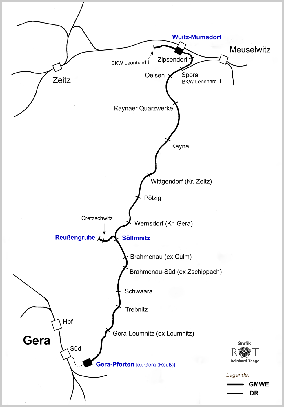 Streckennführung der Gera-Meuselwitzer Eisenbahn (1901-1969)