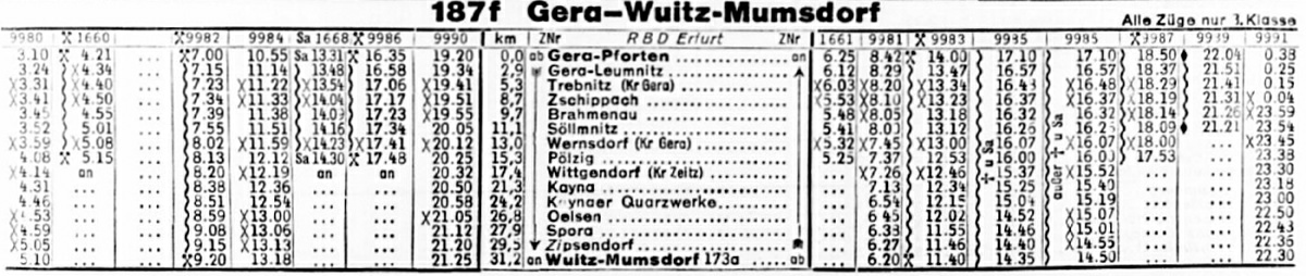 Fahrplan aus dem DR-Kursbuch vom Sommer 1952