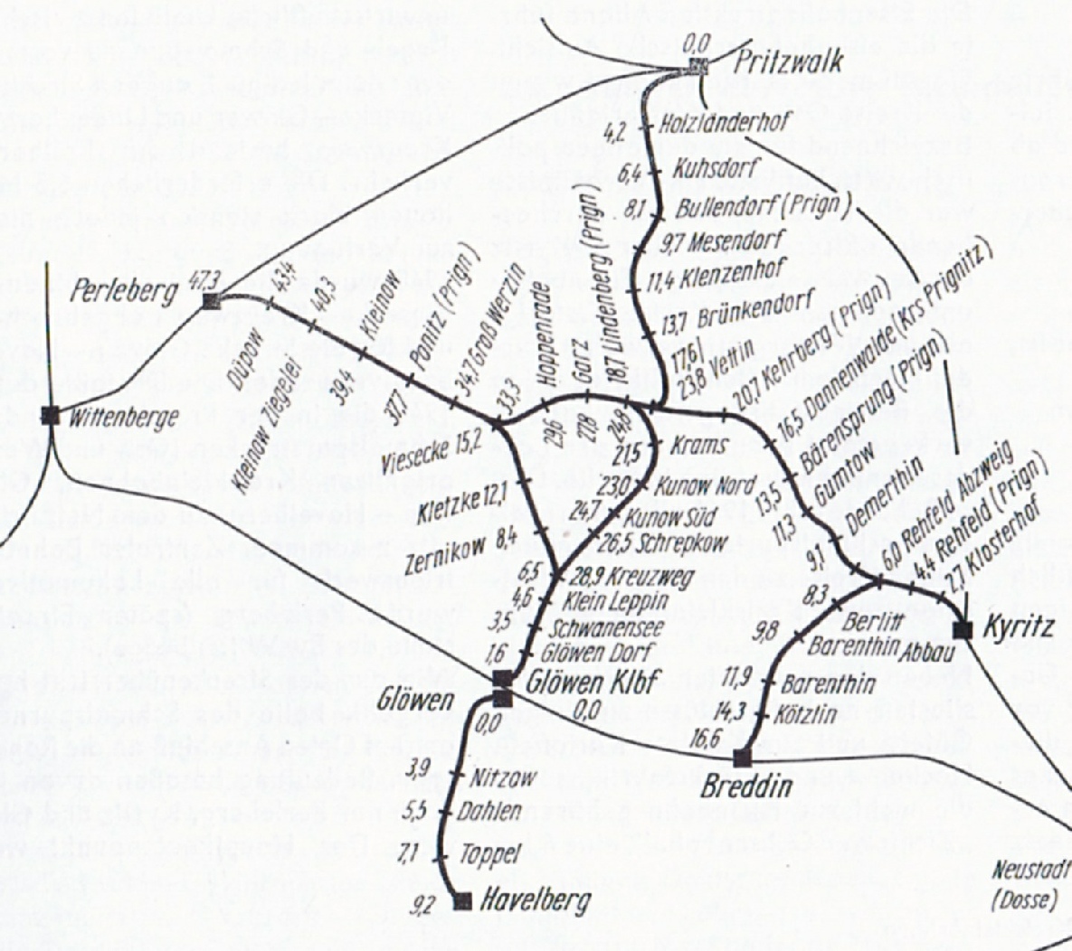 Kyritz > Rehfeld Abzweig > Vettin Abzweig > Lindenberg > Viesecke > Perleberg