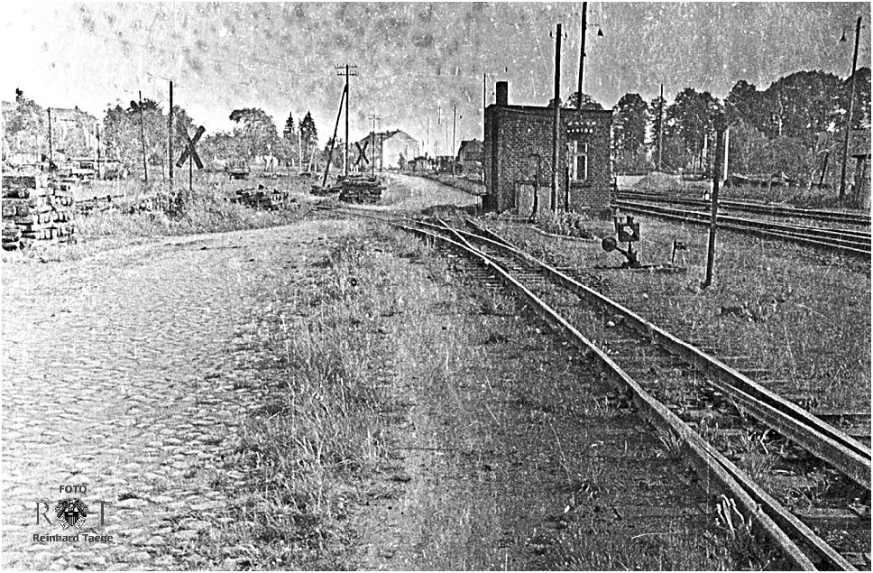 Klbf. Kyritz Ausfahrt nach Lindenberg links herum, geradeaus führt das ehemalige Anschlussgleis zur Stärkefabrik, welches gleich dahinter nach rechts die Normalspurgleise im Bahnhof kreuzt(e). Entschuldigung für die schlechte Bildqualität, aber von dort gibt es kaum Aufnahmen.