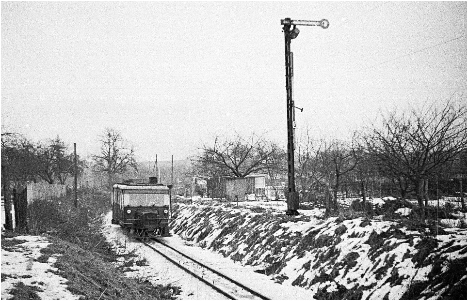 Der Wismarer Schienenbus VT 133 525 in der Ausfahrt des Klbf. Kyritz nach Breddin über Rehfeld Abzweig. Für die knapp 17 Km wird er mit einer ausgiebigen Pause an der Dorfgaststätte in Barenthin eine gute Stunde benötigen, obwohl es auch schneller gegangen wäre; dazu an anderer Stelle mehr. Foto: RT 1/1969