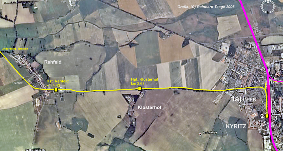 Streckenführung entlang der kopfsteingepflasterten Landstraße Kyritz -Rehfeld Basiskarte: Google Earth 2006