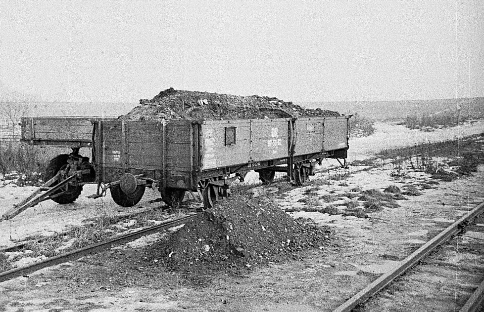 Einsam steht der Oww-Wagen 97-53-52 an der Ladestraße der Haltestelle Rehfeld (Prign.). Offenbar ist das Entladekollektiv erst einmal ins Wochenende gegangen und wird erst am Montagvormittag der kommenden Woche mit der Entladung der undefinierbaren Fracht fortfahren. Fotos: RT 18. Januar 1969