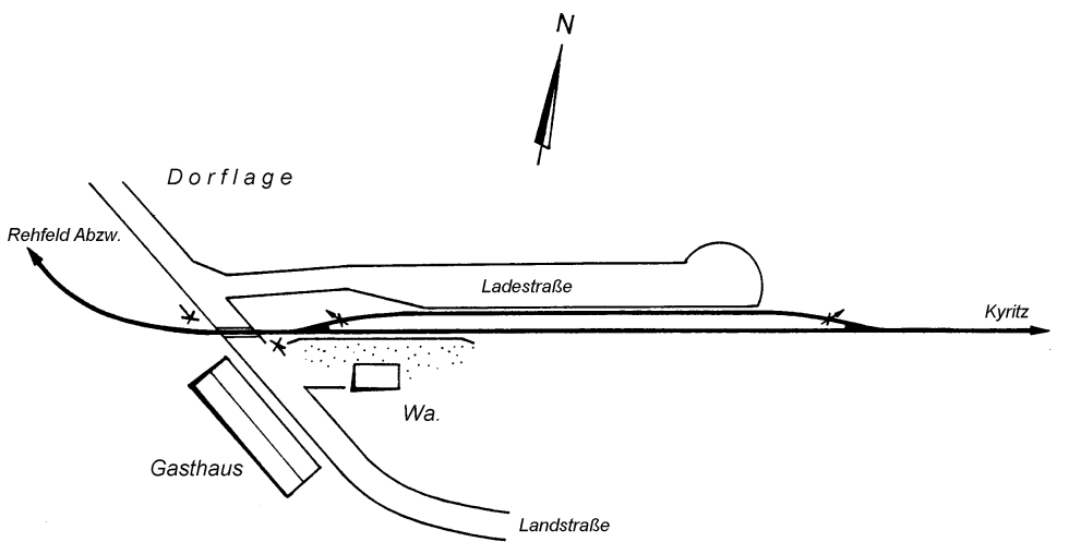 Lageplan der Haltestelle Rehfeld (Prign.) Zeichnung: R. Taege 2/1969