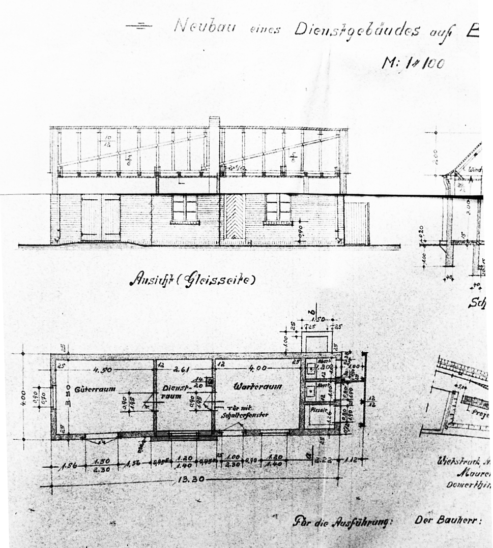 Vielleicht für Modelleisenbahnen interessant, die sich auf die Prignitzer Kleinbahnen spezialisiert haben: Der Grundriss des neuen Stationsgebäudes von Demerthin. Quelle: Rbd-Archiv Schwerin
